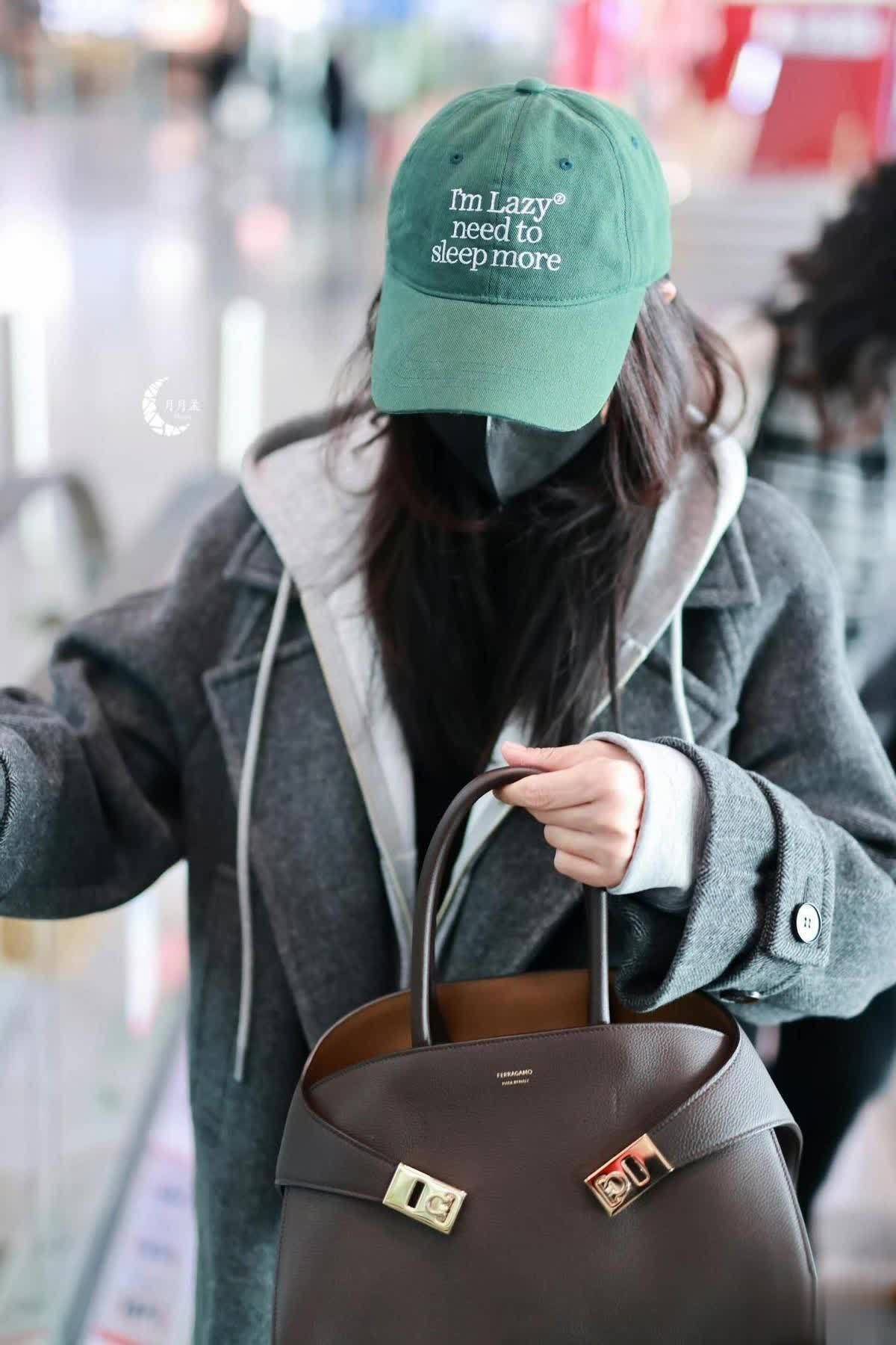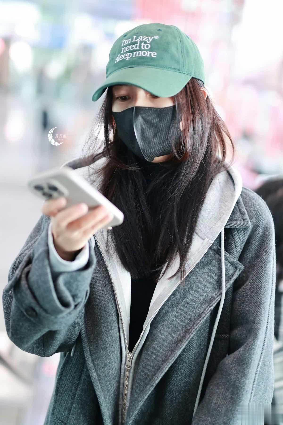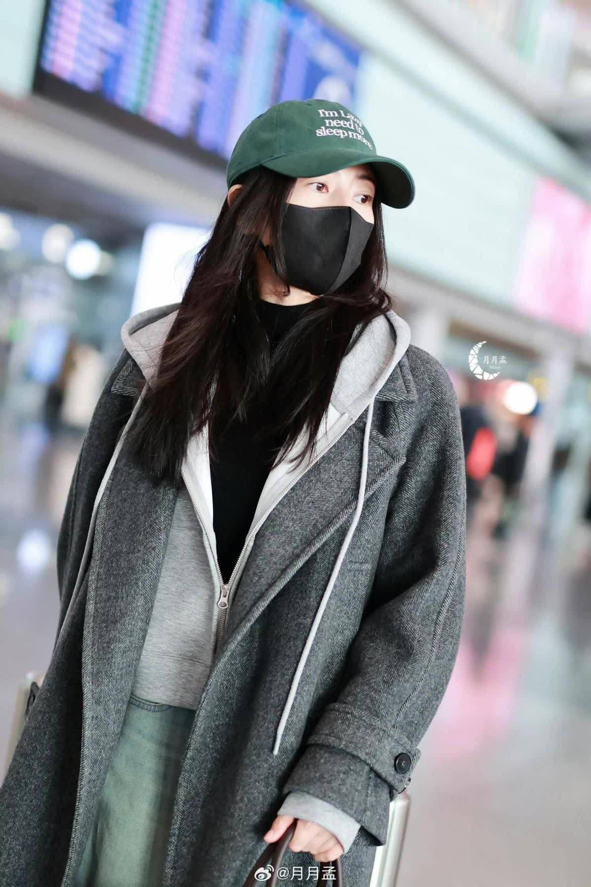 高圆圆选择用浅灰色的卫衣叠穿深灰色的大衣,虽然衣服的颜色是同色系,但由于深浅不同,所以也会觉得非常有层次感,然后再把卫衣的领口敞开,露出最里面的黑色打底衫,更是加强了层次。