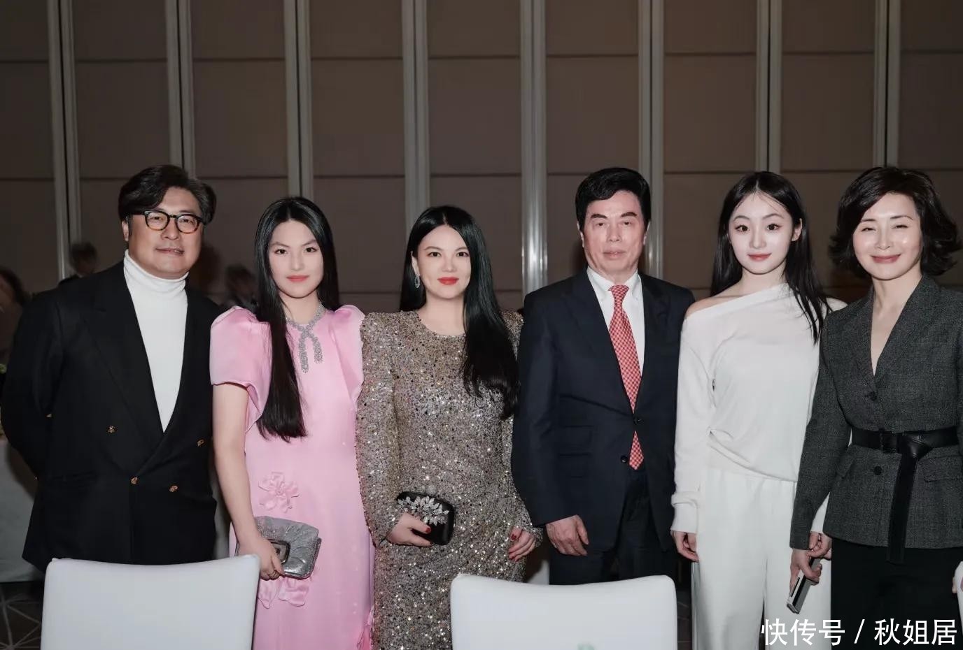 16. 还有一张全家福合影中,出现了国产羽绒服领军品牌波司登创始人高德康的身影,他正站在李湘身旁。值得注意的是,在这张多人合影中,李湘位于视觉中心区域,反映出她在商业社交圈中的高认可度与影响力。