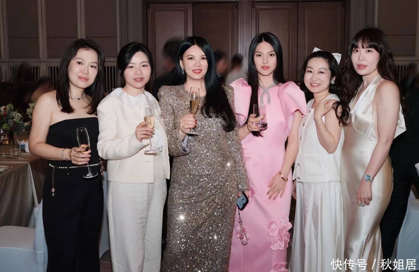 7. 活动当日,三人皆精心装扮出席晚宴环节。李湘身穿一袭闪耀金色长裙,剪裁利落,尽显贵气风范,身形明显纤瘦许多,状态极佳,可见近期在健康管理方面下了功夫,回应了网友长期以来的关注与建议。